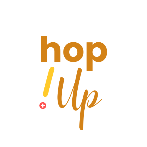 La marque hop!Up est né d'une discussion sur les supporters suisses de football dont le slogan est "hop Suisse!"